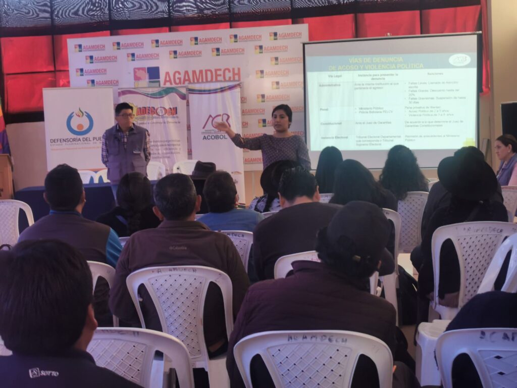 ACOBOL junto a sus nueve Asociaciones Departamentales, en coordinación estratégica con ONU Mujeres Bolivia y la Defensoría del Pueblo, a través de sus Delegaciones Departamentales, y Fundación Internet, como facilitadores, realizamos los talleres a nivel nacional sobre “Acciones legales y defensa frente a vulneración de derechos humanos de autoridades municipales”, en los que participaron concejalas, concejales, alcaldesas y alcaldes de diferentes municipios del país, durante el mes de mayo de 2025.